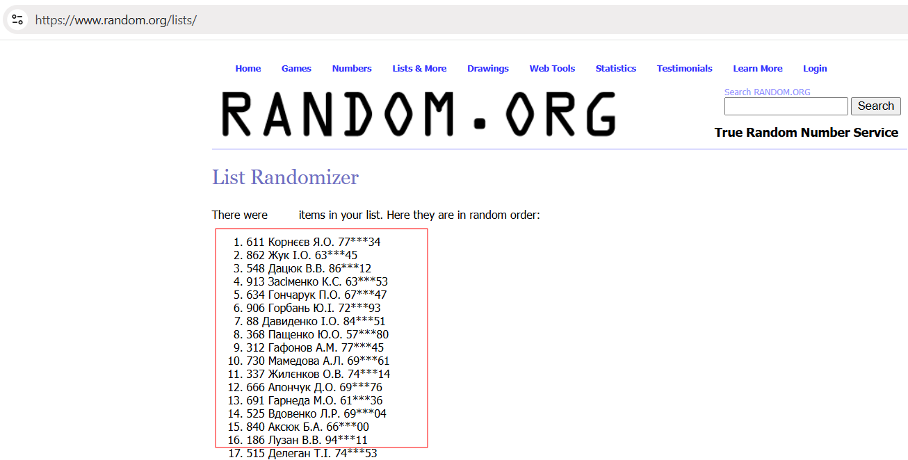 Вибір переможців — це завжди сюрприз від нашого рандомайзера! А ось і підтвердження:
